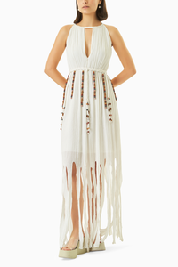 Wherever Ashanti goes, drama follows. This crushed cotton garment is our masterpiece. A hand - braided and beaded belt forms the waistline, from where a flowing gown with theatrical slits ensues. Wear the dreamy Ashanti Dress on your holidays and for special occasions.