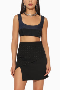Featuring Astryn Skirt by Linetribe, a chic and versatile skirt adorned with hand-done metal eyelet detailing. This stylish piece blends contemporary design with artisanal craftsmanship, offering a polished and effortlessly fashionable look for a variety of occasions.