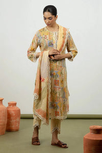 Fabric- Kurta: Mul, Pants: Cotton Silk, Dupatta: Chanderi Color- Yellow Length- Kurta: 38, Sleeves: 18 Components- 3 Product Code- SVESAGE25MAR6C