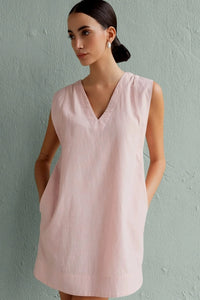 Featuring the Aur Blush Shift Dress by Anaash's AUR collection. Crafted in soft blush pink linen, this relaxed fit dress is all about understated elegance. With its airy silhouette and minimal charm, it promises effortless grace and comfort for sunlit days and easy, everyday styling.