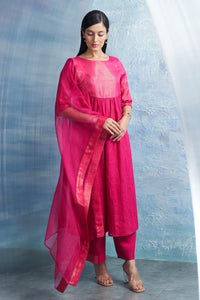 Aura Fuchsia Pink Round Yoke Kurta Set