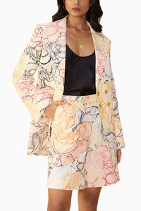 Featuring the Aura Scratches Rowan Shorts by Saaksha & Kinni's Akara Collection A/W'25. Tailored bermuda shorts in an abstract floral print with pockets- playful yet polished.