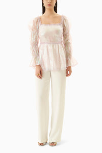 The Aura top is a statement all-over holographic sequins piece that can be worn as a mini-dress or a longer top. It features tiered puff sleeves, a square neckline and falls loosely below the bust cutline.