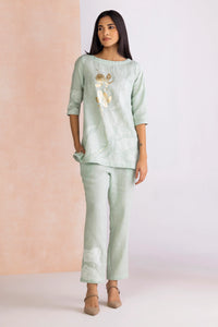 The Mona Top features a classic round neckline and graceful 3/4 sleeves, cut in a relaxed silhouette that offers effortless polish.
