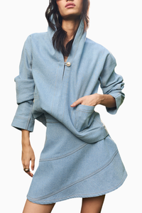 Featuring the Avery Denim Co-ord Set by Kay Kay: A chic ensemble tailored for contemporary flair. Crafted in indigo Twill, its boxy fit offers a relaxed yet stylish silhouette. Elevate your wardrobe with this versatile co-ord set.