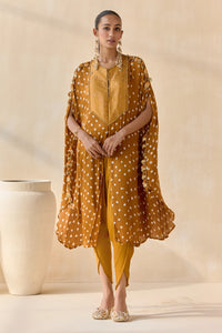 The Ayantika Mustard Cord Set radiates effortless elegance and festive warmth. Crafted from luxurious modal satin, the ensemble features a flowing kurta adorned with subtle bandhani-inspired motifs that celebrate traditional artistry. Intricate tassel details along the neckline and sleeves add a playful charm, while the coordinated pants ensure a graceful drape. The vibrant mustard hue captures the spirit of celebration, making it an ideal choice for festive occasions, intimate gatherings, or elegant daytime festivities.