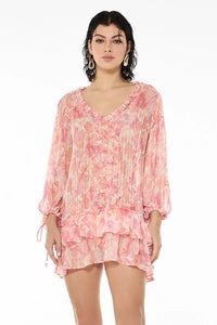 Stay breezy and chic in the Azalea Little Beach Dress. This printed, short-length dress features playful ruffle trims and is adorned with jewel head tassels for a charming, beach-ready look.
