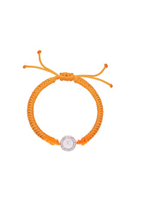 Baby Personalised initial (8 mm) in off white enamel and diamond bracelet with orange cord in 14KT yellow gold are featured from our Raksha Bandhan collection to Celebrate the eternal bond of love and protection this with our exquisite Fine Jewellery Rakhi Collection. Each piece is intricately crafted with love and care, making them the perfect tokens of affection for this special occasion. Stone : Full Cut Diamonds