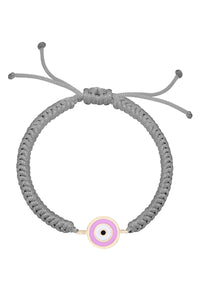 Baby round in pink and white enamel eye (8 mm) bracelet with grey cord in 14KT yellow gold are featured from our Raksha Bandhan collection to Celebrate the eternal bond of love and protection this with our exquisite Fine Jewellery Rakhi Collection. Each piece is intricately crafted with love and care, making them the perfect tokens of affection for this special occasion.