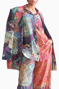 Featuring Bailey Multi Blazer by Saaksha & Kinni from Botanica Collection. This daisy print wide collared blazer combines a vibrant floral pattern with a bold wide collar and modern side cut-out detailing. Its stylish design adds a unique touch of elegance to any outfit, perfect for making a statement.