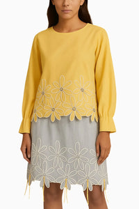 Banana Cotton Peplum Top with Embroidered Skirt