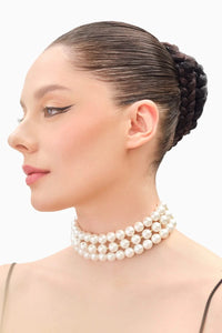 The Bandel White Pearl Choker features a sleek, contemporary design with evenly spaced, lustrous white pearls arranged in a chic banded style. The clean, symmetrical layout gives the piece a modern yet timeless appeal, making it a versatile accessory for both everyday wear and special occasions. Its minimalist elegance adds sophistication to any outfit, offering a refined and stylish touch that enhances the natural beauty of the pearls.