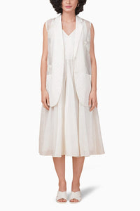 Bara Embroidered Ivory Sleeveless Jacket and Dress