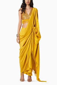 Composition: Silk Color: Ochre Yellow Fit: This sari fits true to size, takes the shape of your body as it is a drape. The sari is high waisted, get it according to your high waist size. Components: 1 Product Code: SVE43188-3241601OCHYLW