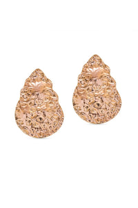 Crafted from copper and brass with a 22k rose gold plating, Valliyan Beaten Drop Rose gold Earrings feature a textured design that adds a chic, modern touch to any outfit. Perfect for both everyday wear and special occasions.