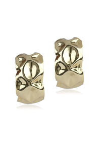 Made from copper and brass with 22k gold plating, Valliyan Beaten Hoops Gold Earrings showcase a unique textured design. These elegant hoops add a subtle shine, perfect for everyday style or special occasions.