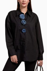 Embrace a unique blend of boldness and grace. The relaxed fit and timeless silhouette ensure comfort and style, making it easy to dress up or down. Whether you're pairing it with tailored trousers for a sleek office look or with your favorite jeans for a more casual vibe, the floral detailing adds just the right amount of charm and personality.