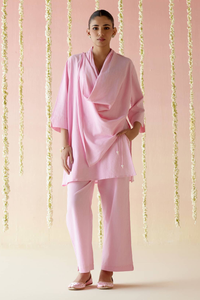 Introducing our Wrap Style Draped Top and Pants ensemble, designed in breathable and textured Khadi fabric for ultimate comfort. The top features an elegant wrap design that drapes gracefully, adding a sophisticated touch to your look. Paired with the Plain Khadi Pants, which complement the top perfectly, this coordinated set offers a seamless and stylish appearance. The ensemble combines the traditional charm of Khadi with a contemporary twist, making it a versatile choice for effortless and chic styling.