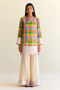 The Begum Kurta is crafted in the most beautiful and vibrant handwoven organza silk created by our artisans in Banaras. The quinessential Genda exquisitely decorates the sleeves of the kurta. The Kurta comes with wide silk pants that are finished with pearl and zardozi hand embroidery and kimkhwaab tanchoi tissue.
