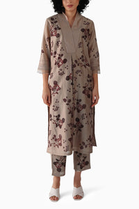 Beige Block Print Tunic and Pant