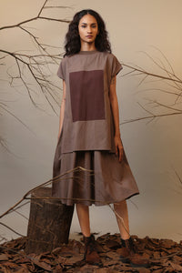 Applique style colour block dress in layers giving skirt and top like feel in one piece. Ribbed colour details on the neckline and side pockets.