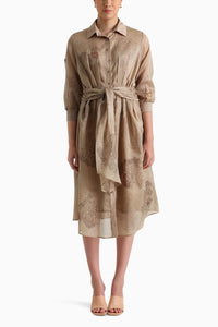 Elevate your style with our Beige Printed Tie-Up Dress, crafted from a luxurious blend of stripe organza and silk chanderi. This enchanting dress features exquisite handblock prints and hand embroidery, adding a touch of artistry to its design. The tie-up detail enhances your silhouette, while the included slip ensures comfort and versatility.