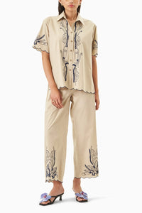 Featuring a cotton co-ord set with thread embroidery, this ensemble combines classic craftsmanship with modern comfort for an effortlessly stylish look.