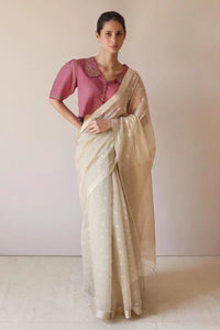 As if plucked from a sun-drenched meadow, the Beige Wildflower Meadow Jamdani Saree is rooted in heritage and delicacy.
