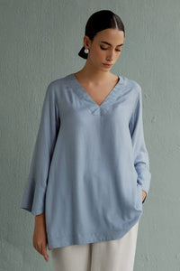 Featuring the Bel Sky Blue Top with Pants by Anaash's AUR collection. Crafted in soft moss fabric, this sky blue co-ord set offers a relaxed fit with a serene, fluid drape. A perfect blend of comfort and elegance, ideal for effortless daywear with a refined, modern edge.