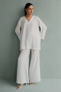 Featuring the Bel White Top with Pants by Anaash's AUR collection. Tailored in soft moss fabric, this all-white co-ord set offers a relaxed silhouette that blends structure with ease. A timeless ensemble for refined minimalism and graceful day-to-evening transitions.