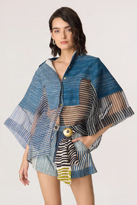 Featuring Bellamy Blue Grey Shirt by Saaksha and Kinni's Estampa S/S'26 Collection, this dual stripe print shirt is crafted in a sheer batwing silhouette. It delivers a relaxed, fluid fit with a contemporary edge.