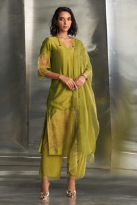 Elevate your wardrobe with this stunning berry green straight kurta set, featuring exquisite nakshi and zari gold patchwork. The intricate scalloping along the neckline adds a touch of elegance, while the elasticated palazzo with a drawstring ensures comfort. Complete the look with a beautifully crafted organza dupatta, finished with delicate nakshi handwork. Perfect for any occasion!