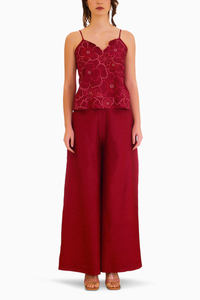 A harmonious blend of elegance and flair. Crafted from premium fabric in a rich berry hue, these spaghetti top and palazzo pants exude confidence and style. Perfect for both formal events and casual outings, this set adds a touch of vibrance to any ensemble, ensuring you make a statement with effortless grace and allure.ÂÂÂ