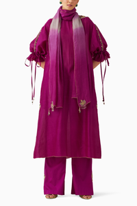 Adorned with delicate stonework embroidery, our Bia Tunic Set offers a fresh take on contemporary style. Effortlessly paired with a chanderi scarf and bell-bottom pants, this ensemble is perfect for adding a touch of elegance to any occasion. Make a statement with the Bia Tunic Set, where comfort meets sophistication!