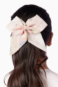 Introducing the "Meadow Bow" crafted from linen, adorned with a whimsical strawberry field print. Versatile and chic, perfect for any ensemble.