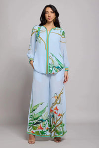 Immerse yourself in the poetic beauty of nature with our Bird Printed Co-ordset in stunning blue and green shades. This captivating ensemble brings the grace of birds to life, evoking serene landscapes. Perfect for nature-inspired fashion lovers, it adds elegance and a unique charm to your wardrobe.