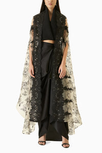 Black and Grey Embroidered Organza Cape Set
