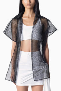 Breeze Jacket ,round neck jacket with 3/4 sleeves. Laser cut on the entire jacket gives you a nice and breathable layering piece..