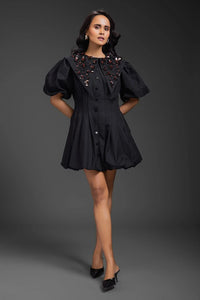 Featuring Black Bubble Sailor Dress by Deepika Arora. A playful bubble silhouette cotton dress highlighted by a bold sailor collar design. This statement piece blends classic charm with modern flair, making it perfect for standout daytime looks and stylish casual outings.