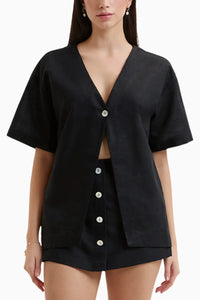The Capri top offers a relaxed fit with a V-neckline and Shell button closure. Tailored with luxurious Linen fabric, this elevated basic pairs perfectly with the Capri Linen skorts or pants for a day out in the city or packing for a holiday.
