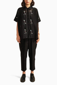 Black Chanderi Embroidered Shirt and Pant