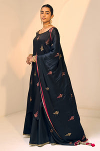 Featuring Black Chavi Dupatta by Sarang Kaur from Seerat Collection. Meticulously crafted from satin georgette in a classic black shade. Its elegant design adds a sophisticated finishing touch to any outfit, perfect for enhancing your ensemble with a refined and timeless appeal.