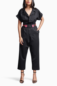 Black Collared Jumpsuit With Belt