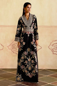 Black Contrast Embroidered Dress Kurta with Tie-Up Belt