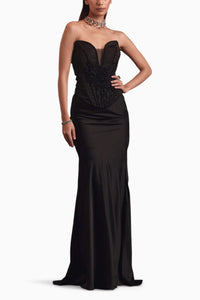 Black Corset Embellished Top With Satin Skirt