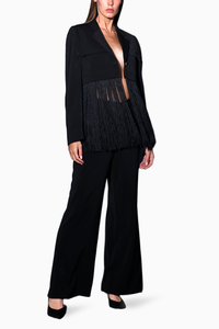Featuring Black Crop Jacket With Fringes by Swatee Singh. Indulge in sophistication with the relaxed fit and fringed details, crafted from black heavy crepe for an effortlessly stylish look.