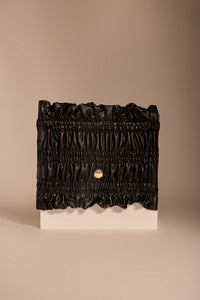Designed to make a quiet statement, the Drift lamé sling bag pairs intricate smocking with gold-toned hardware. In classic black, it’s a versatile pick for after-dark plans—blending elegance with a hint of drama. A removable chain strap lets it move effortlessly from intimate dinners to nights out.