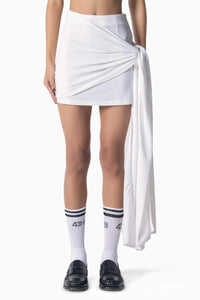 The duu Skirt is sure to become a timeless staple in your wardrobe. This mini skirt complemented by a wrap-around panel and a knotted detail on the side, all crafted from luxurious jersey fabric, ensuring a blend of comfort and sophistication. Perfect for work or date night, its classic design and elevated details will make you stand out from the crowd .