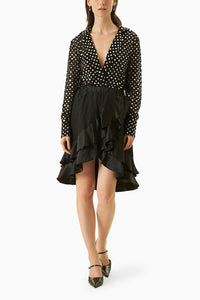 Lace Body Suit With Hand Embroidered Faux Leather Laser