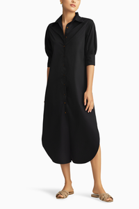 A Black Egyptian Cotton Long Shirt Dress sounds elegant and comfortable! It likely offers a classic, clean look with the luxurious feel of Egyptian cotton. It's versatile enough to be worn casually or dressed up for more formal occasions. The long length adds a graceful silhouette, perfect for various settings and seasons. Overall, it sounds like a timeless wardrobe piece that combines style and quality.